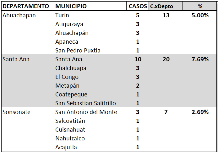 Hacia dónde vamos con el COVID-19? Mapa, datos y barras de municipios con casos positivos en El Salvador
