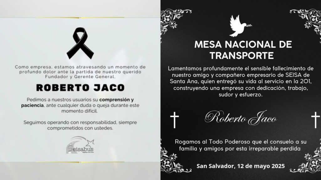 La noticia fue confirmada por la empresa Seisabus a través de una esquela publicada en redes sociales, donde lamentaron profundamente la pérdida de su fundador y destacaron su trayectoria al frente de la compañía. Posteriormente, el vocero de la Mesa Nacional de Transporte, Luis Regalado, también confirmó la noticia en una entrevista con el medio Diario El Mundo, donde informó que Jaco falleció mientras se encontraba en las bartolinas del sistema 911 de Santa Ana.