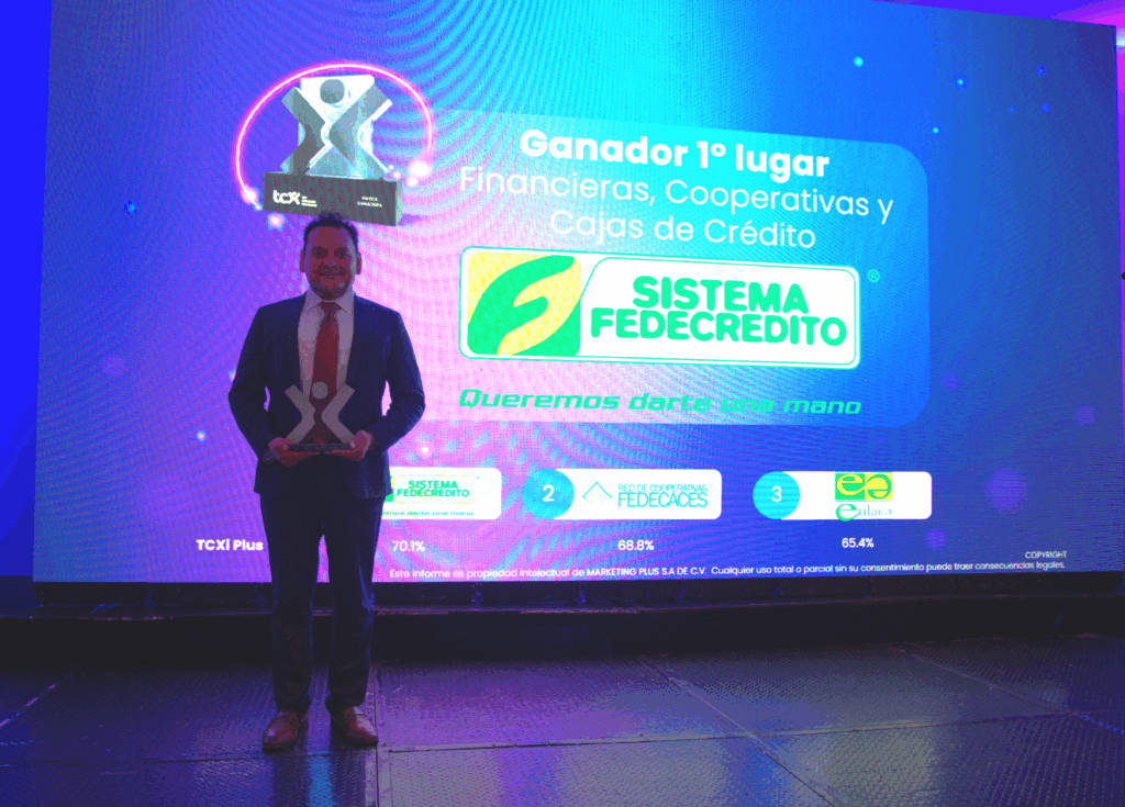 Nuevamente el SISTEMA FEDECRÉDITO ha sido galardonado en el evento regional Top Customer Experience (TCX), con el primer lugar en la categoría de Financieras, Cooperativas y Cajas de Crédito. Este reconocimiento lo posiciona como la marca que ofrece la mejor experiencia al cliente, destacando por generar una conexión emocional significativa con los salvadoreños.