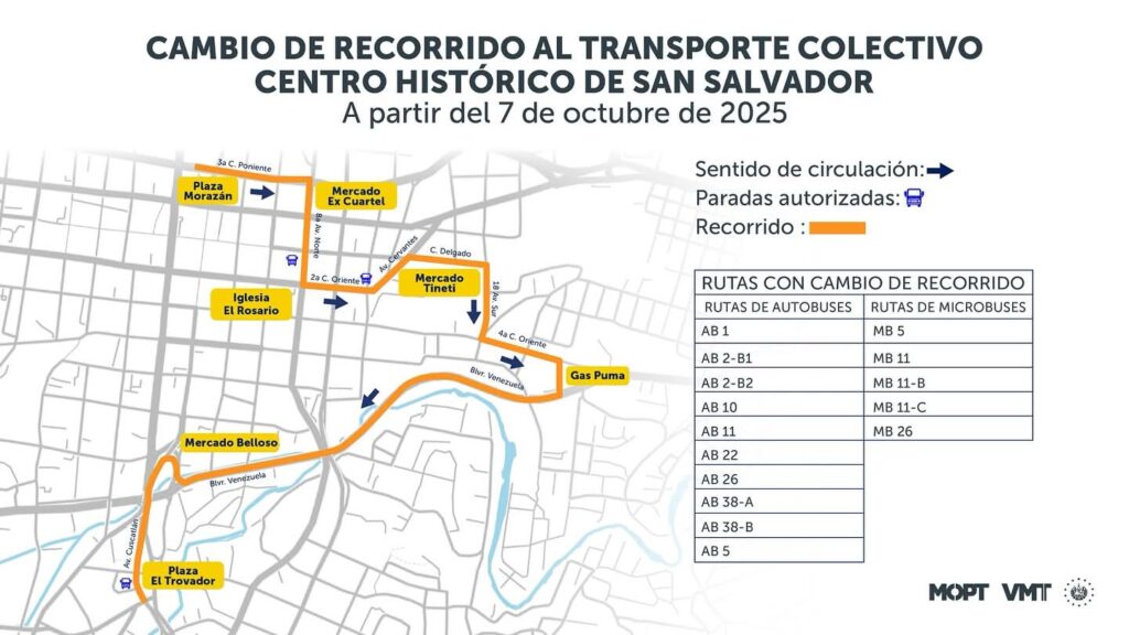 (ENNews)-–El Viceministerio de Transporte (VMT) ha puesto en marcha un significativo plan de reordenamiento de la circulación en el corazón de la capital salvadoreña, que implica una modificación en los recorridos de varias rutas de autobuses y microbuses.