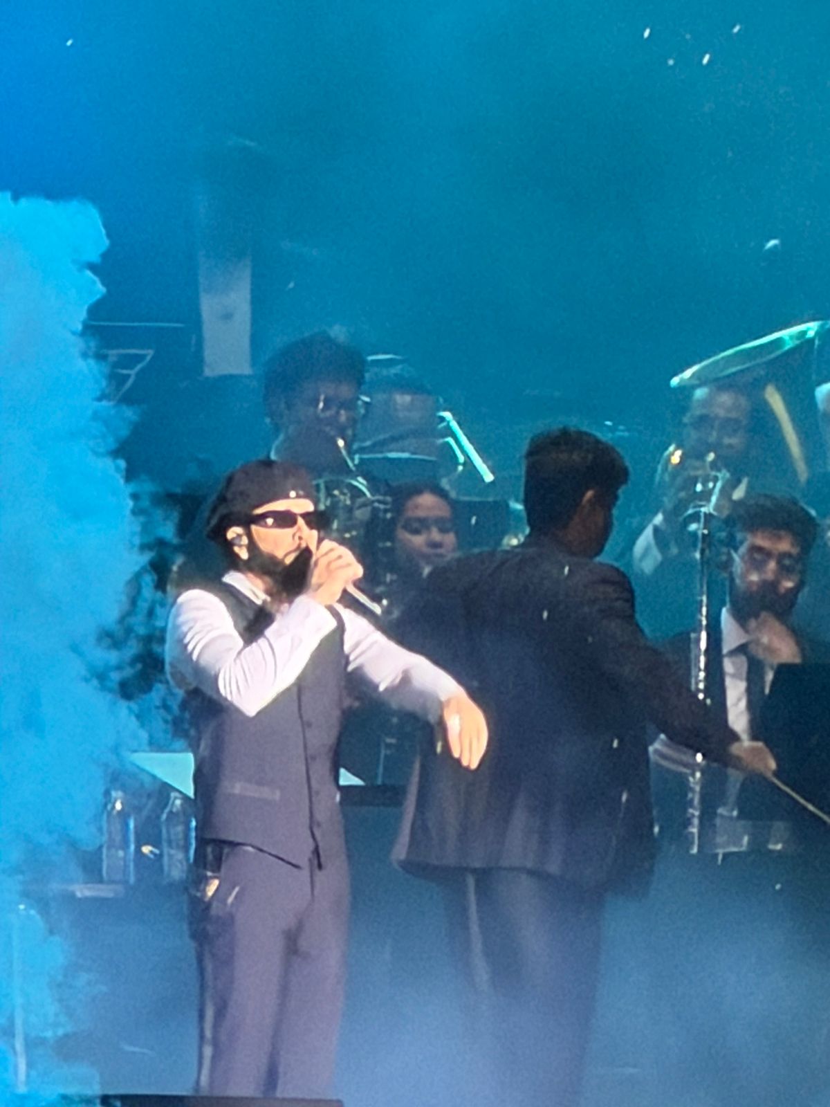Sobre el escenario, la Filarmónica de El Salvador acompañó al artista bajo la dirección de un invitado especial, el director de la Filarmónica de Miami. La presentación requirió semanas de preparación para lograr una armonía entre los instrumentos clásicos y los ritmos característicos del género urbano.