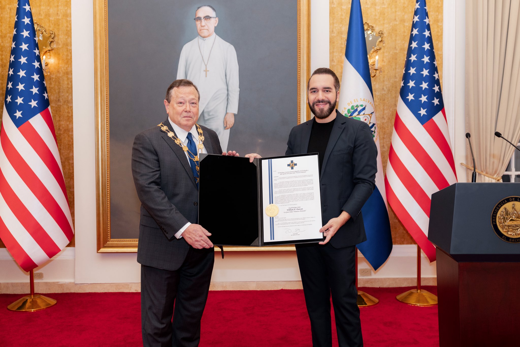 Presidente Bukele condecora al embajador William Duncan, quien se retira del servicio exterior